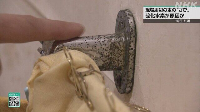 埼玉県によりますと、ことし7月以降、現場周辺では車のエンブレムやミラーなどの部品のメッキがさびて変色しているといった報告が相次いでいます。