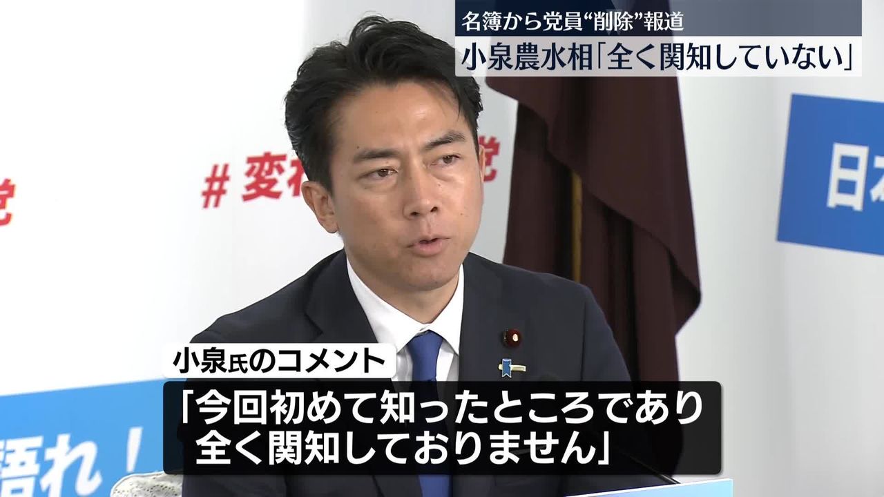 小泉農水相「全く関知していない」 名簿から党員削除“近い県議が関与”報道