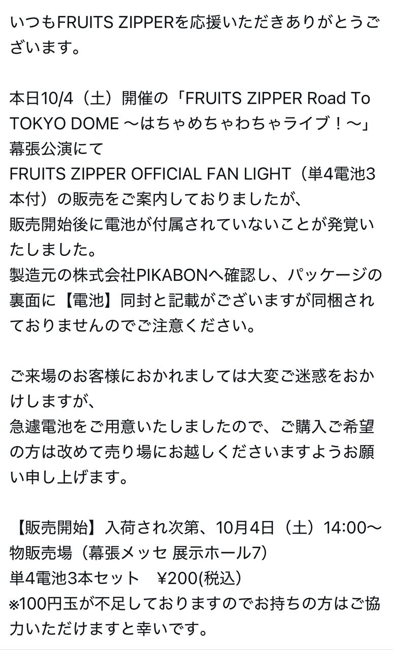 【悲報】人気アイドル「ペンライトに乾電池同梱って書いてるけど入ってないから200円で電池売るわ」