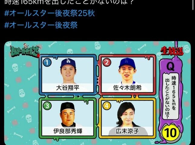 【悲報】昨日のTBSオールスター感謝祭の後夜祭、とんでもない問題を出してしまう