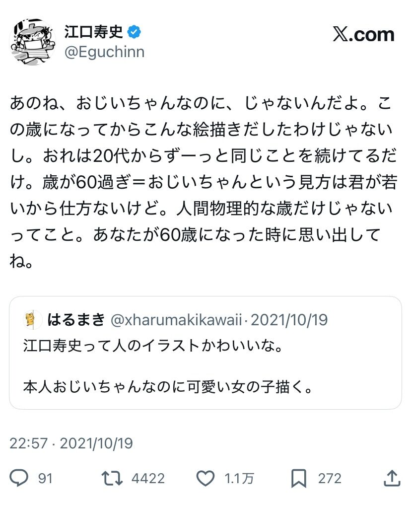 【悲報】江口寿史さん、ガチ切れ「俺はおじいちゃんなんかじゃない」