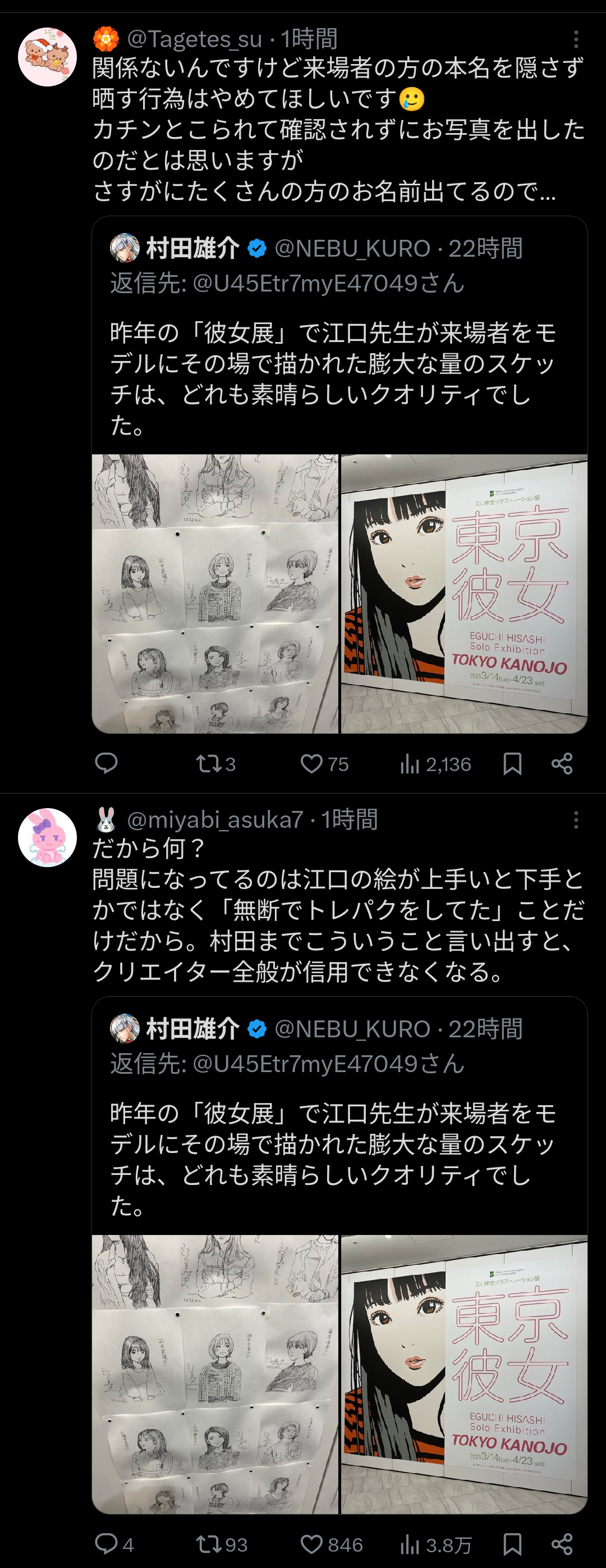 ワンパンマン作者、江口寿史(トレス家)を庇い炎上中wwww 一般人の名前を晒す