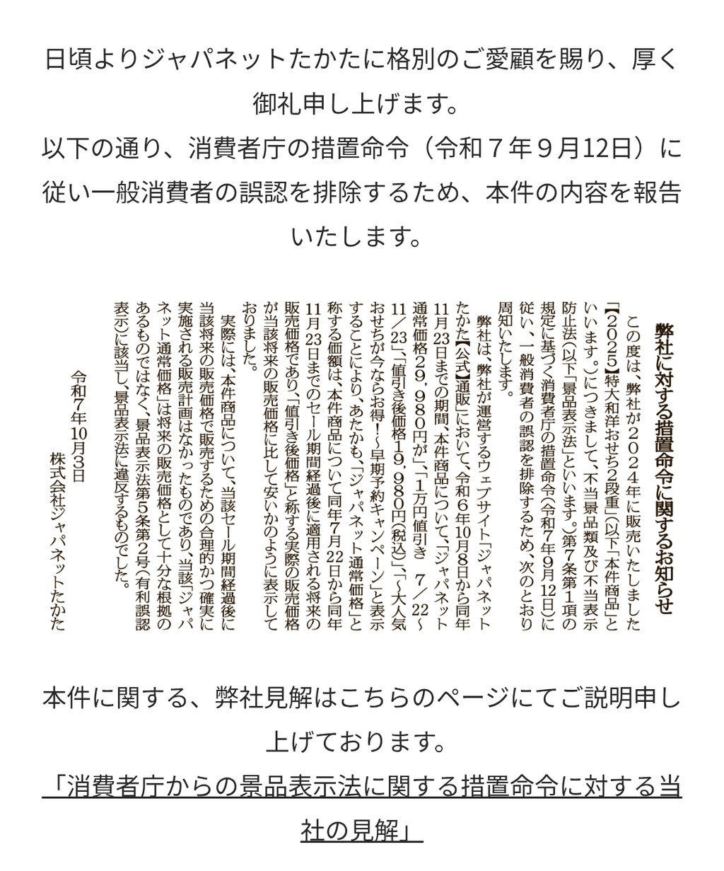 当社見解はこれまでと変わらないため、引き続き消費者庁と協議を進めてまいります。