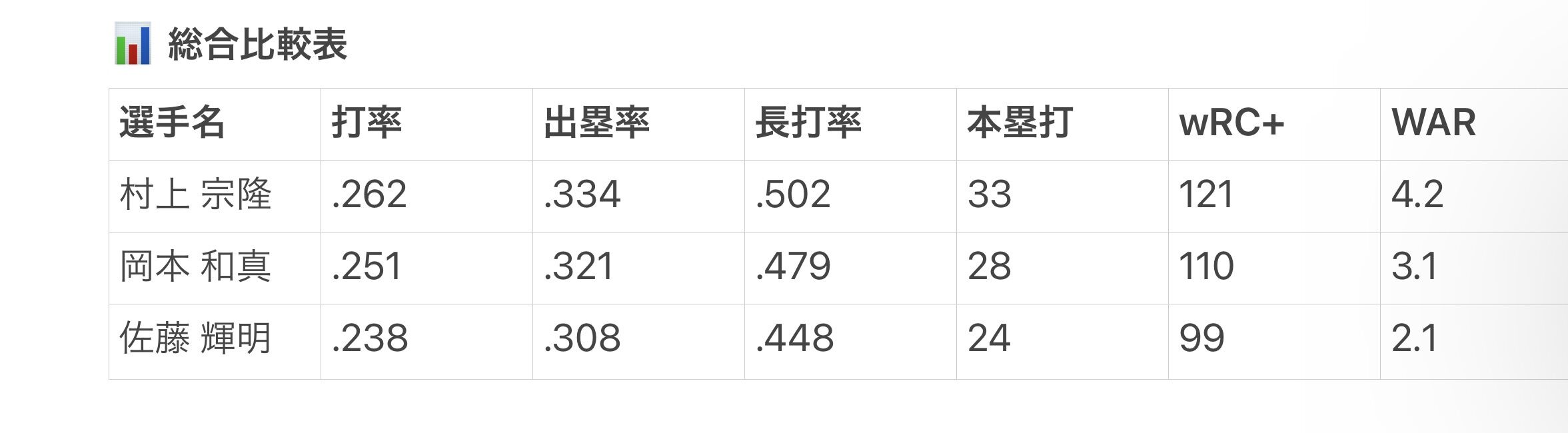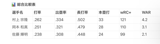最新AIが予想する村上宗隆、岡本和真、佐藤輝明のメジャーリーグでの打撃成績とWARwwwwww