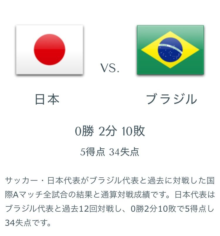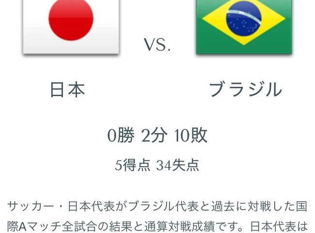【悲報】今日戦うサッカー日本vsブラジルの対戦成績