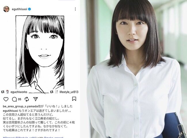 【悲報】江口寿史さん「吉岡里帆を上手く描けた!さすが俺!」→なぞり絵だったと判明