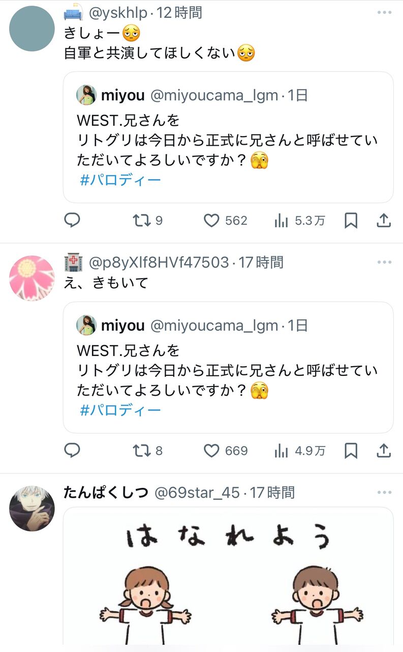 【悲報】リトグリ「ジャニーズWESTのこと兄さんって呼んでいいですか?」←ジャニオタブチギレ炎上