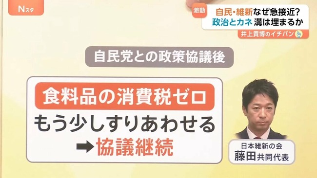 自民党と日本維新の会は16日、維新の連立入りを含めた政策協議の初会合を国会内で開いた。協議には自民の高市早苗総裁、維新の藤田文武共同代表らが出席。維新は災害時の首都中枢機能のバックアップを担う「副首都構想」や、社会保険料引き下げなどの「社会保障改革」など12項目の実現を要求。食料品の消費税率ゼロや企業・団体献金禁止などで折り合わず、17日に再協議することとなった。