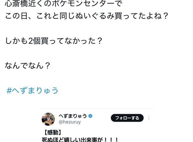 へずまりゅう「子供からポケモンぬいぐるみプレゼントされた!」