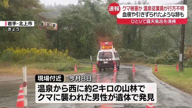 この温泉から西に1.8キロの場所では、10月8日にもキノコ採りに出かけてクマに襲われたとみられる男性の遺体が発見されています。