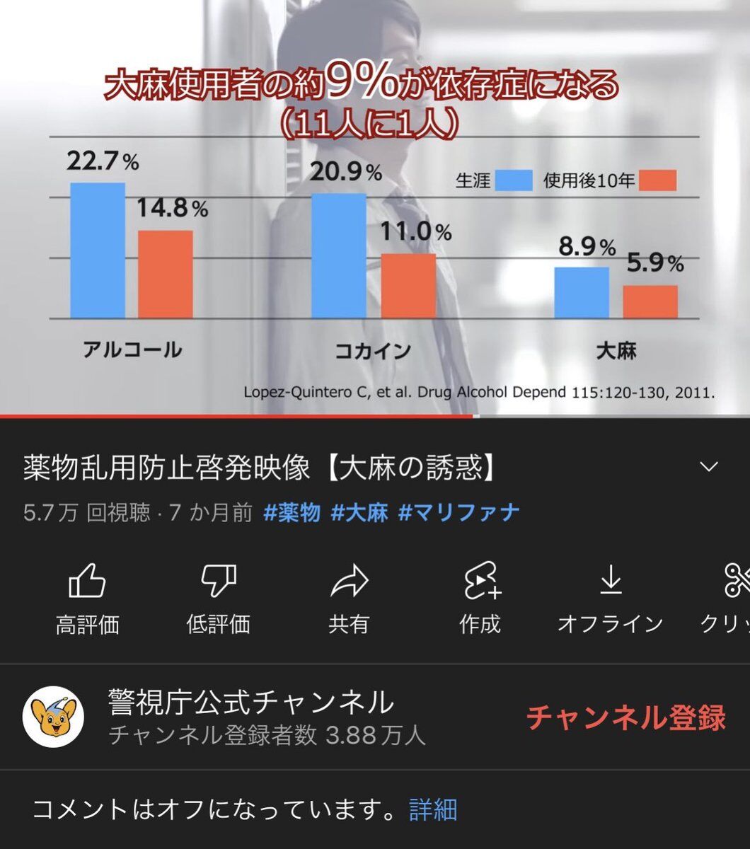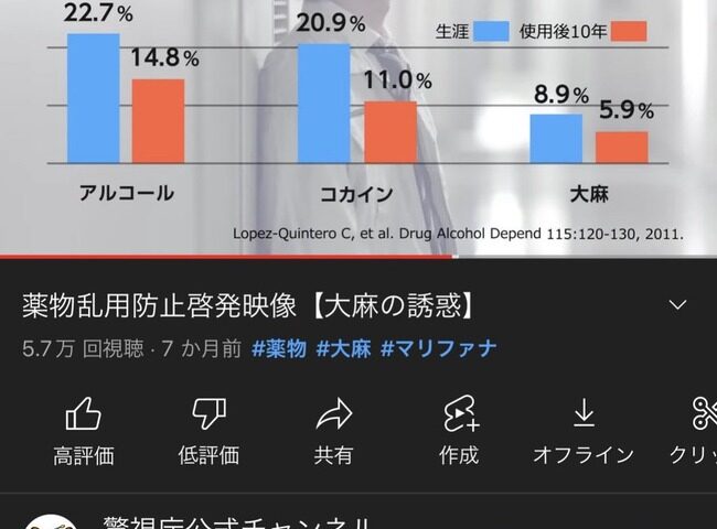 【悲報】警視庁「大麻、ガチでヤバい。使用者の9%が依存症に😱」