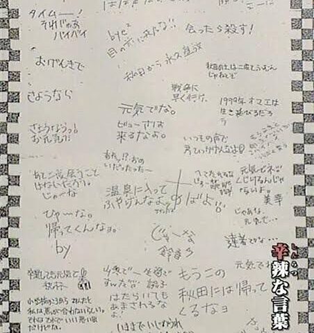 【画像】畠山鈴香さんの卒アルの寄せ書き、悲惨すぎる・・・
