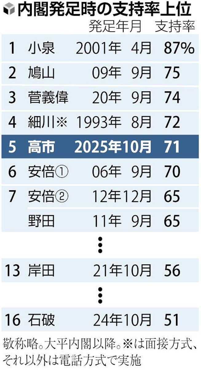 高市内閣の支持率71%、歴代5位の高さ…読売世論調査