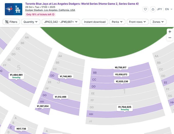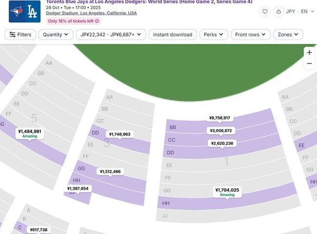 【画像】メジャー、大谷の試合のチケット1,000万円になる