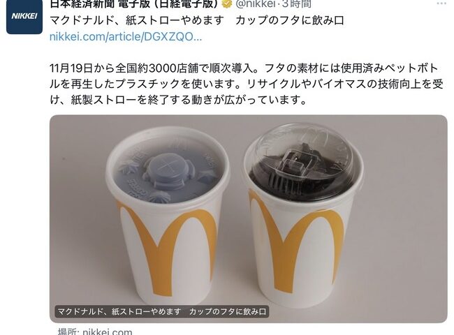 【朗報】マクドナルド、紙ストローを廃止