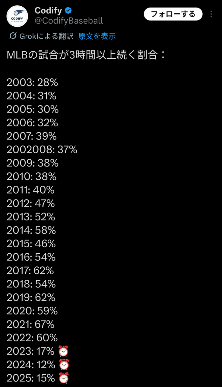 MLB、試合時間の大幅すぎる短縮に成功していた😳 割とすごい