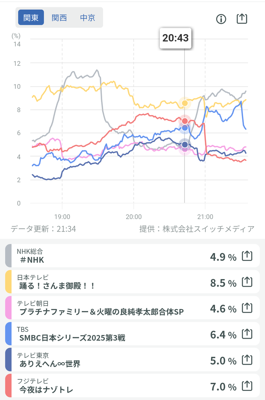 【朗報】日本シリーズ第3戦の視聴率、どうやら5%くらい(史上最低の可能性)wwwwwwww