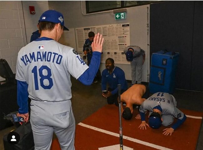 佐々木朗希が山本由伸に土下座、ドジャースカメラマンが衝撃写真を公開「完投してくれないかな」