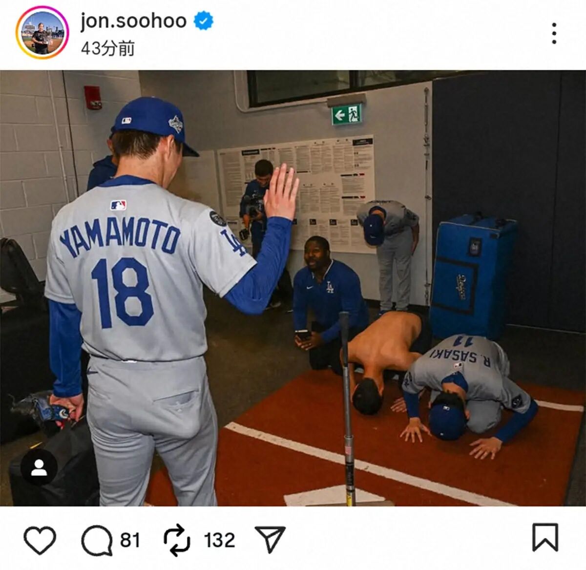 佐々木朗希が山本由伸に土下座、ドジャースカメラマンが衝撃写真を公開「完投してくれないかな」