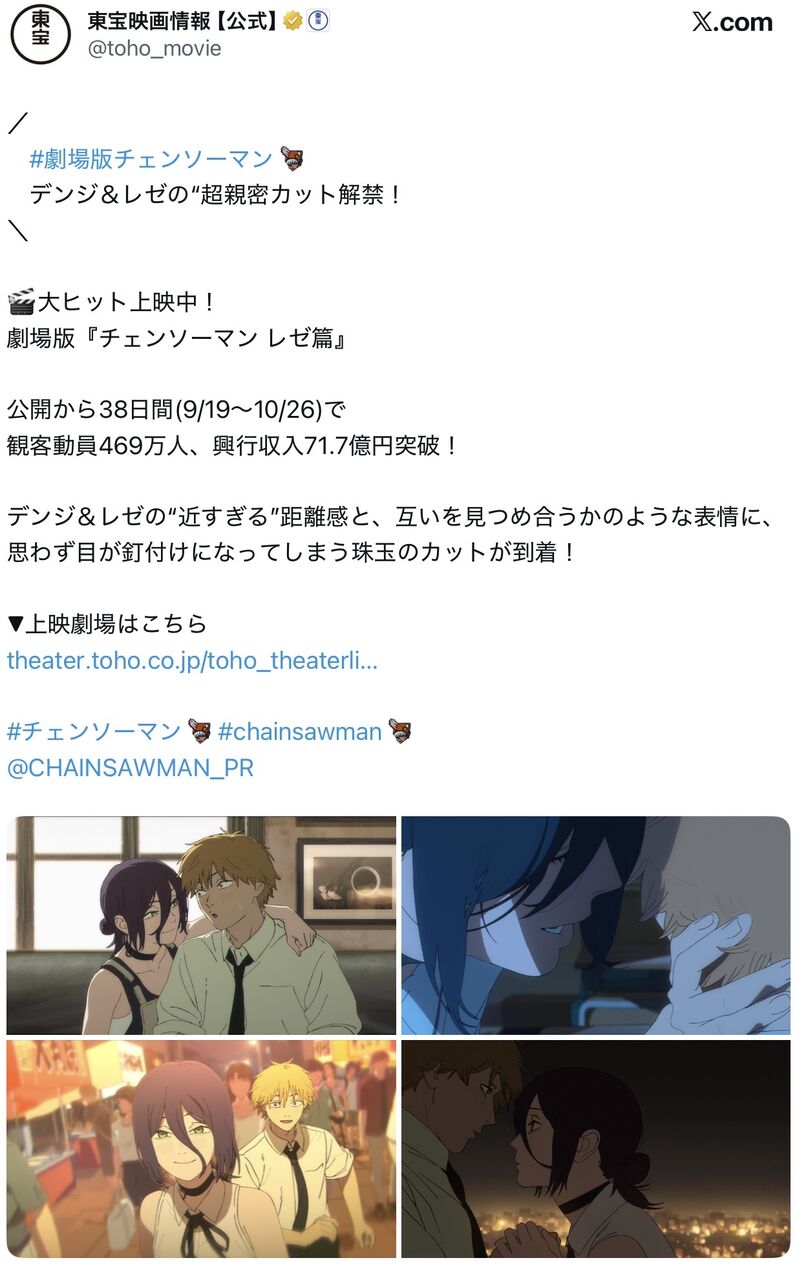 【速報】映画「チェンソーマン レゼ篇」、世界興行収入150億wwwwwwwwwwwwwwww