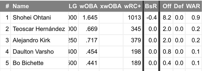 本日の大谷:WAR0.9、wRC+1013