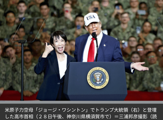 【画像】空母ジョージワシントンで登壇した早苗とトランプwwwwwww