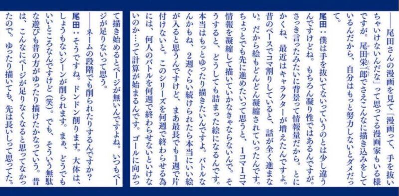ワンピース作者「ページが足りないんで1コマ1コマ情報を凝縮して詰まった絵で描くようにしたんです」