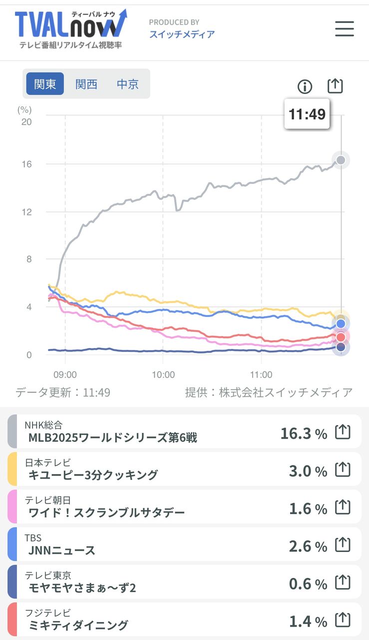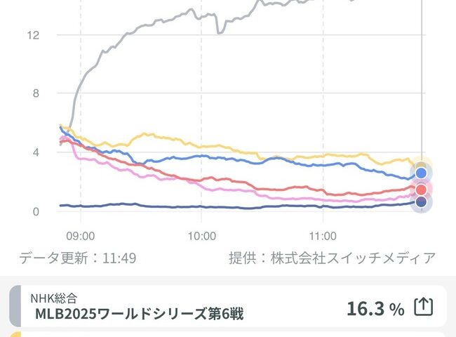 ワールドシリーズ視聴率16.3%wwwwwwwwwwwwwwww