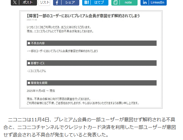 【速報】ニコニコ動画、プレミアムユーザーを勝手に退会させる