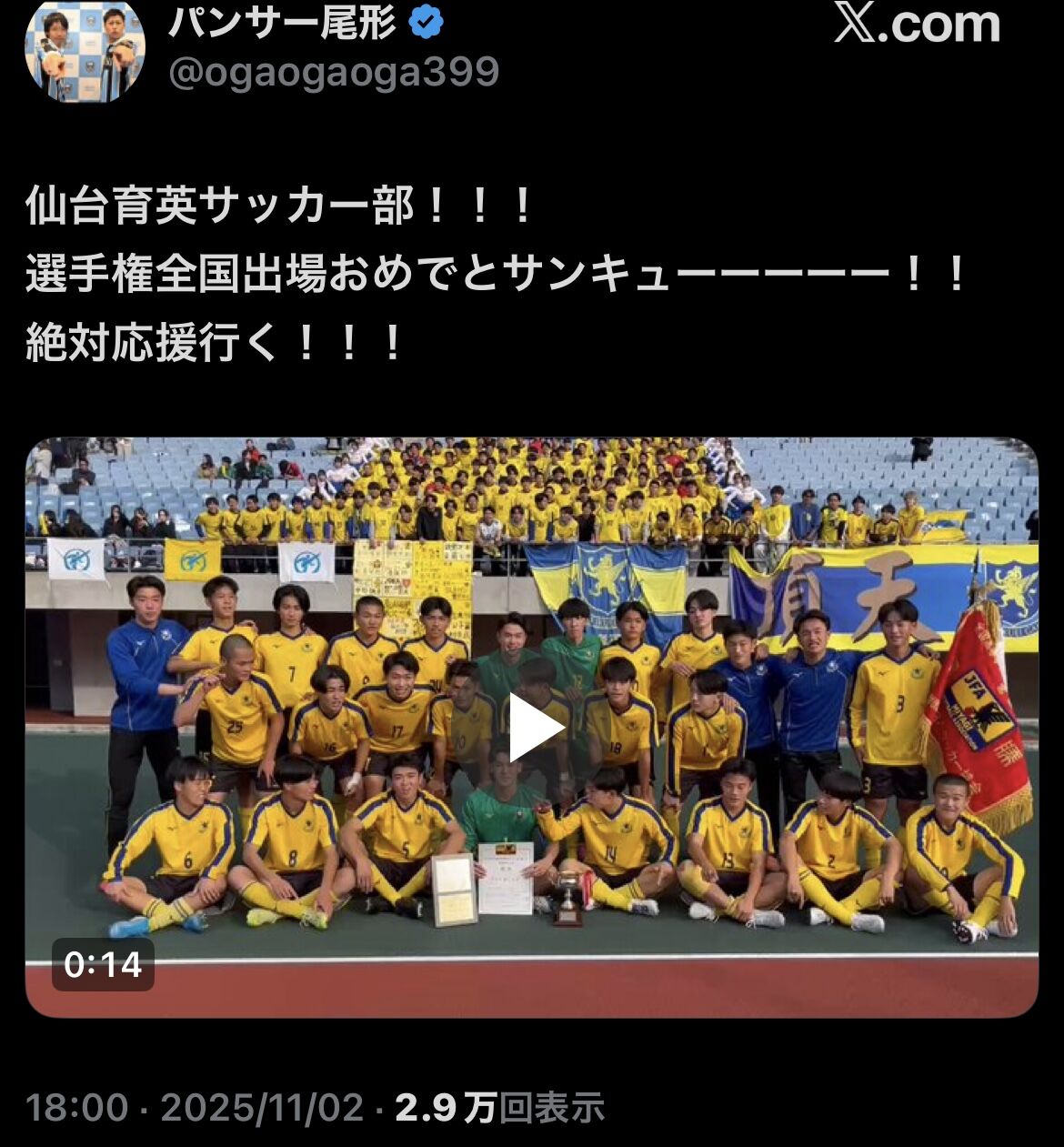 【悲報】パンサー尾形さん、仙台育英を祝福して炎上