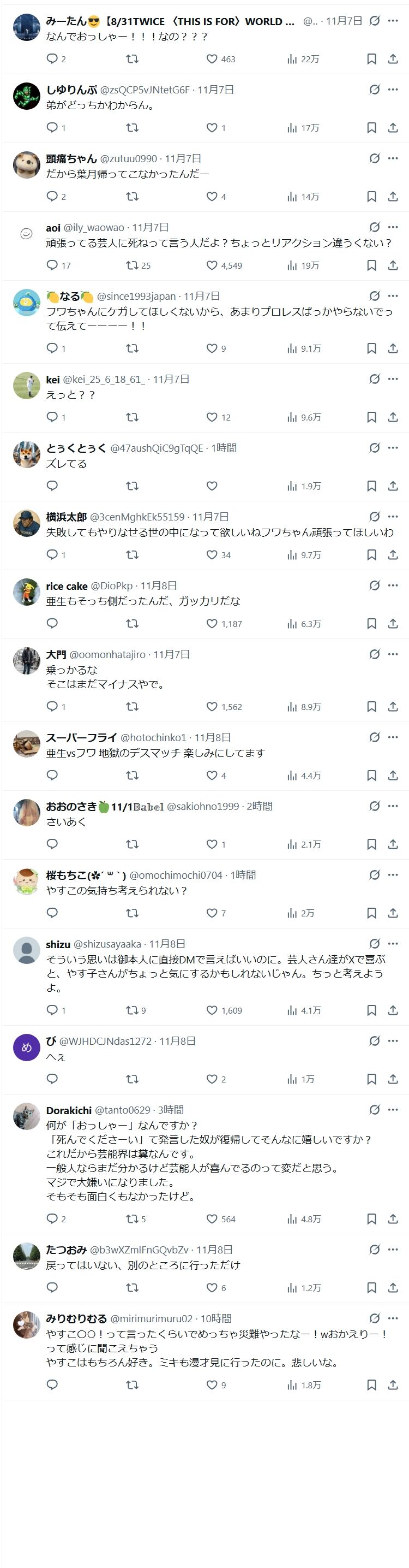 でもフワちゃんの一件でやす子もたいがいなのバレてたしフワちゃんだけが悪いとも言えんよな