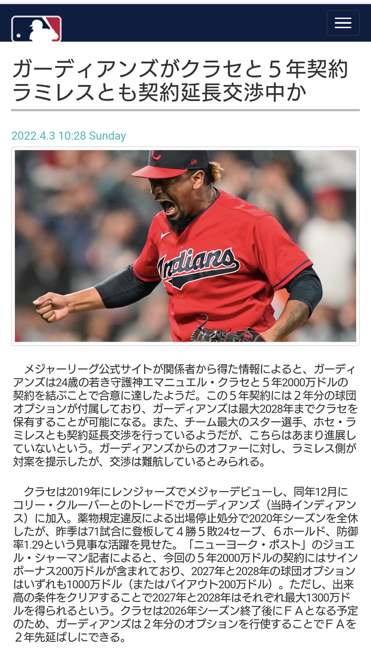 クラセ、MLB永久追放(27歳、通算188s、最多セーブ3回)野球賭博に関与し起訴される