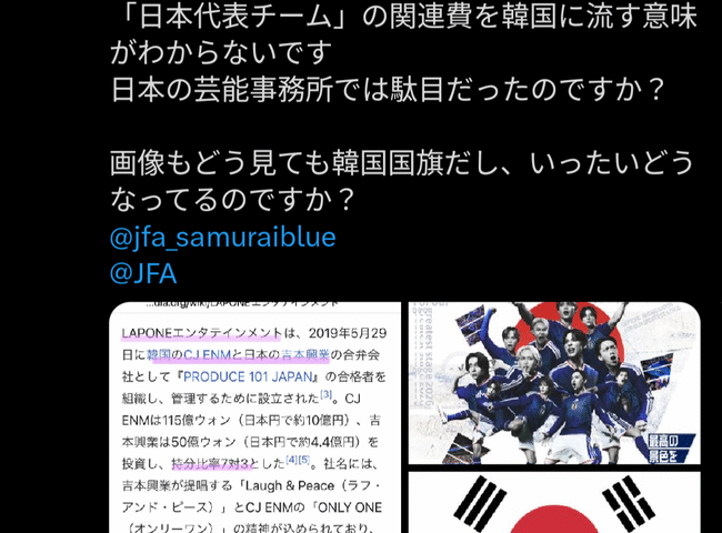 サッカー日本代表はなぜ韓国資本の会社ラポネのタレントたちをアンバサダーに選んだのですか?
