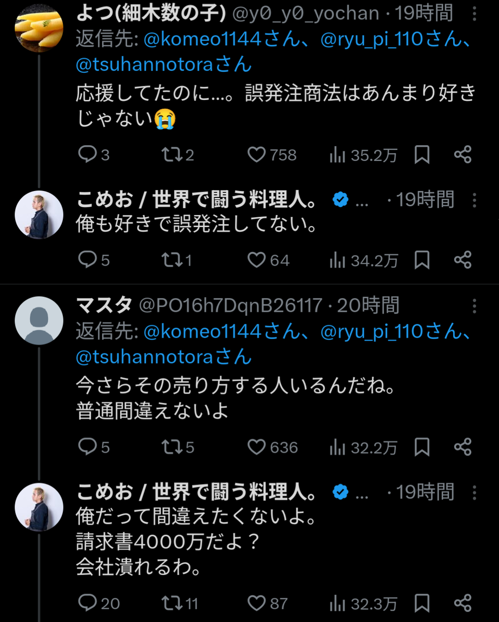 【悲報】プロ料理人、とんでもない誤発注をやらかす 損害額4000万円w