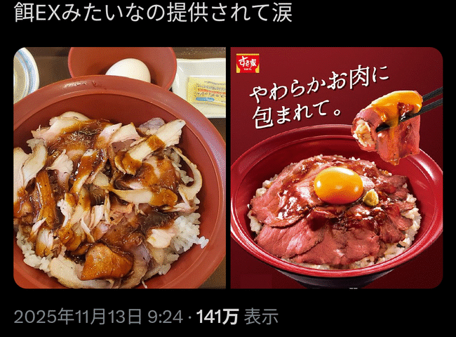 【画像】Twitter民「すき家で新作注文したらこんなの出てきた😭」
