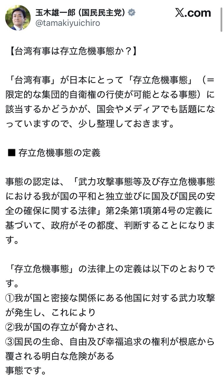 【朗報】漢・玉木雄一郎、高市の存立危機発言のヤバさを解説wwwwwwww