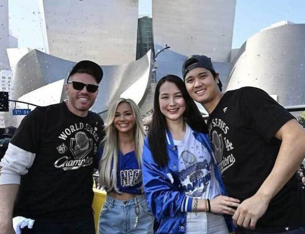 【画像】大谷翔平(193cm)フリーマン(196cm)大谷真美子(180cm)フリーマン嫁(普通サイズ)