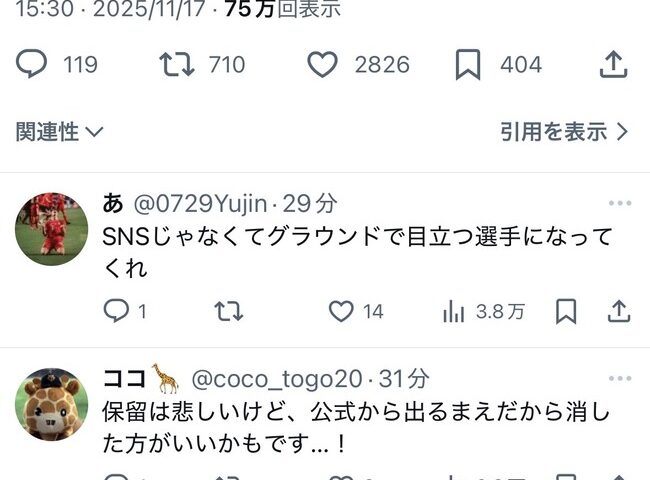 【悲報】巨人山瀬、なんか球団と揉めてる模様。SNSに投稿