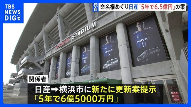 協議が続く中、関係者によりますと、日産側から横浜市に新たに「5年で6億5000万円」で更新する案が示されたということです。