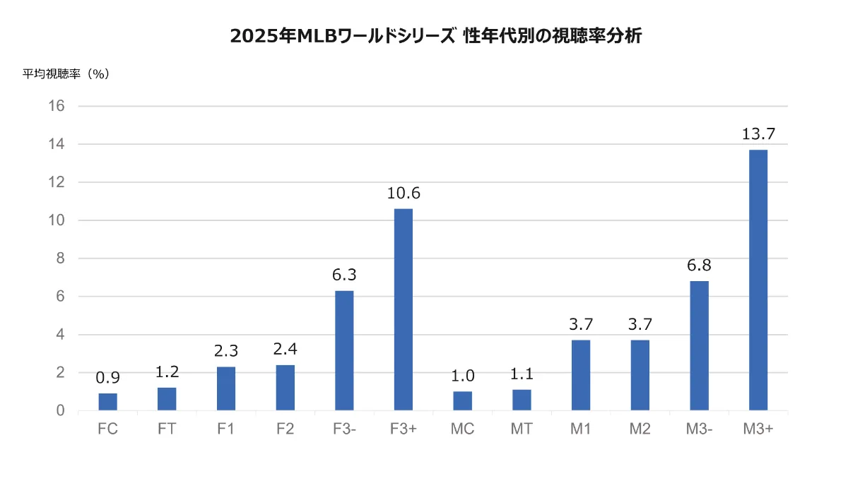 50~64歳男性(M3-)は6.8%となっており、シニア層が視聴を強力に牽引していることが明らかになりました。