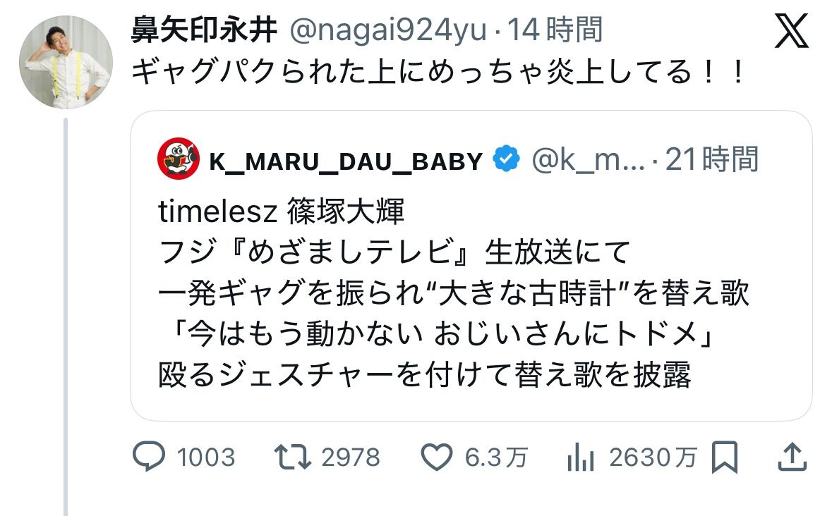 【悲報】アイドル、めざましTVで自作ギャグを披露も不謹慎&大滑り&盗作のトリプルコンボで炎上