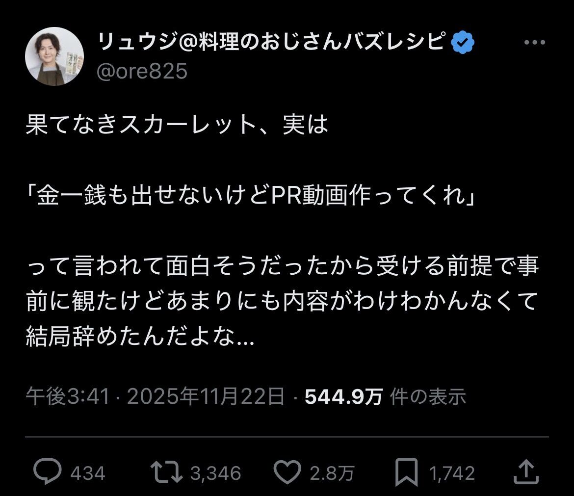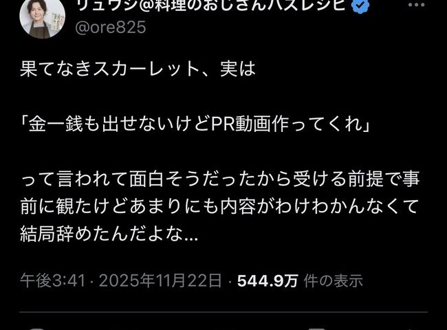 リュウジ「サマーウォーズ監督最新作のPR動画タダで作れって案件きたけど映画意味わからんくてやめた」
