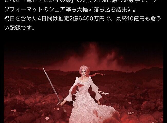 【朗報】果てしなきスカーレットさん、連休で100ワニの6倍の興行収入を記録!!!!!!!!!!!