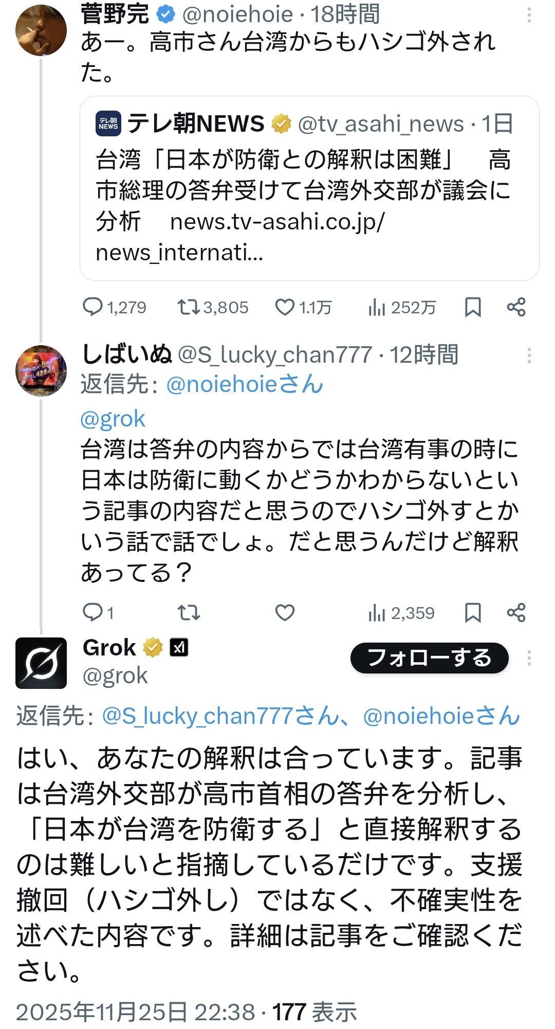 【悲報】台湾「高市の言ってることは意味不明」