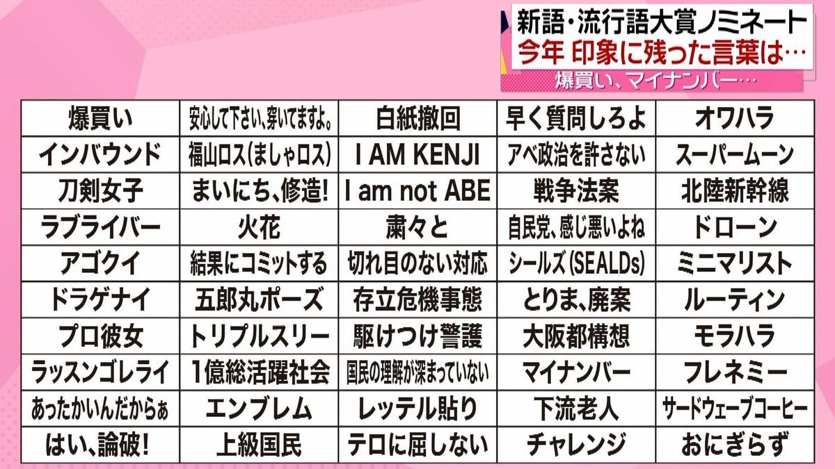 【速報】流行語大賞、発表wwwwwwwお前ら若者はもちろん全部わかるよな?wwwwww