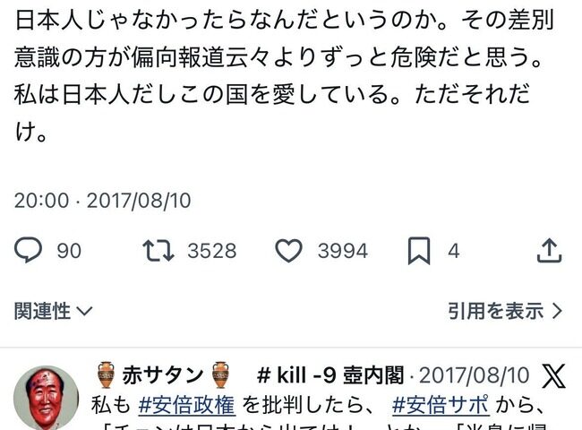 結局自分の気に食わないやつは日本人じゃない言ってて草
