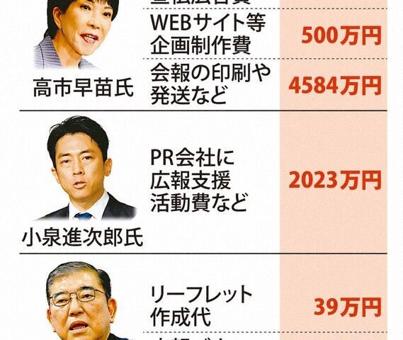 高市氏、宣伝費に8000万円超 24年総裁選 水面下で巨費投じる