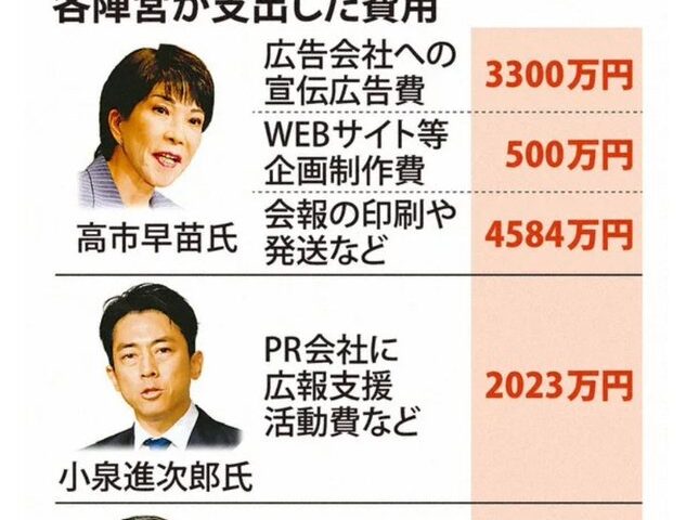 自民党総裁選の宣伝費が公開 石破42万円・小泉2023万円・高市8384万円