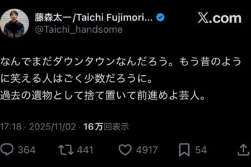 【悲報】藤森「なんでまだダウンタウンなんだろう。昔みたいに笑える人は少数だろうに」