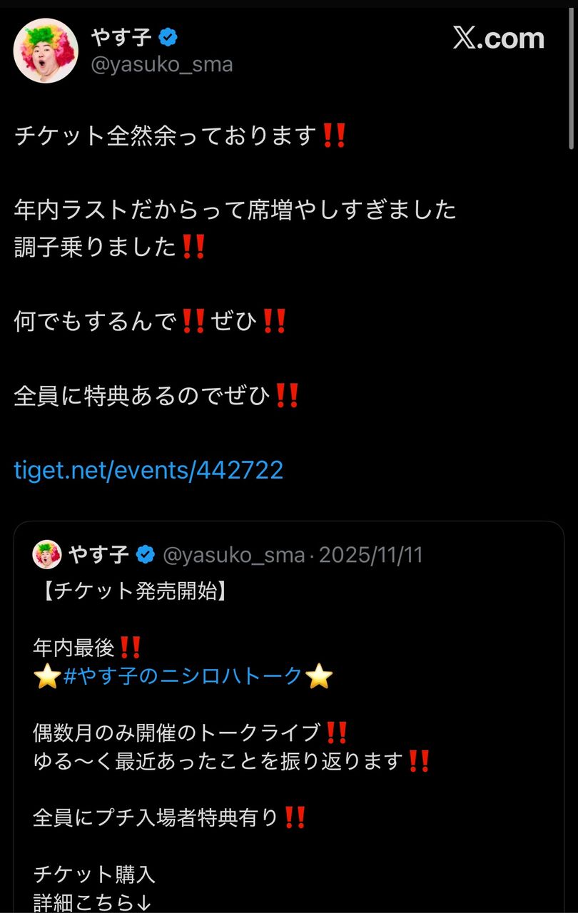 【悲報】やす子、トークライブショーのチケットが余ってしまう 60分2000円の神コスパなのにどうして…